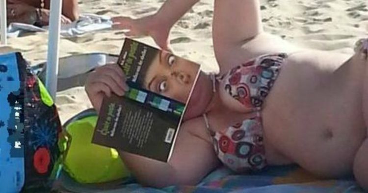 Do you like to bring a book or magazine to the beach for some reading time? While not everyone would say “yes,” having a good book at the beach is undoubtedly great. However, it’s not very usual to see people reading on the beach. But if you’re planning to go there alone, it’s strongly suggested to take an interesting book, just as the other woman has done. Look at the image; what a creative and fun way to have the book’s cover mirror your look!